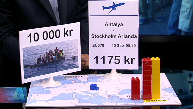 هانس روسلینگ: و مهمتر از هر چیز آن بحران بزرگ اصلی را ببینیم. همانطور نخست وزیر بدرستی میگوید اینجا در اروپا بحران مهاجرت و آوارگی نداریم. مسأله اینجا نیست، آنجاست. و حالا آدم از خودش میپرسد چرا این جمعیت از مردم که با چنین مصیبتی دست به گریبانند، در آن کشور باقی میمانند یا در این اردوگاههای بی وسیله و بی تجهیزات؟ و تازه حاضرند برای یک سفر با قایق که برایشان خطر مرگ دارد، ده هزار کرون بپردازند؟ برای چی با هواپیما نمیآیند؟! روی اینترنت چک کردم؛ آدم میتواند با پرواز مستقیم از آنتالیای ترکیه به استکهلم بیاید با بلیطی که برای روز ١٣ سپتامبر قیمتش فقط ١١٧٥ کرون است. یعنی از اینجا بیاید...