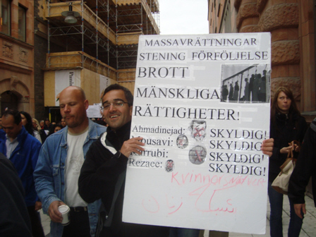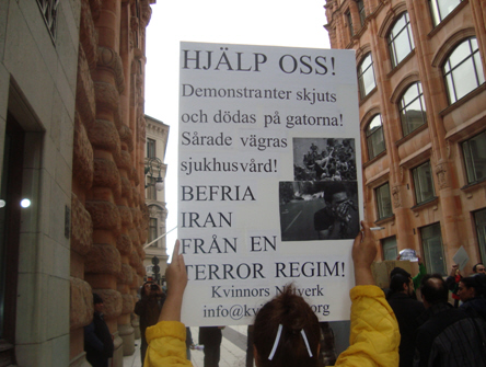 I Iran demonstrerar människor på gatorna med risk för sina liv mot en regim som hållit sig vid makten i 30 år genom förtryck, terror och övergrepp mot den egna befolkningen. Demonstranter slås blodiga och grips av militär och civilklädd säkerhetspolis. Visa ditt stöd för det iranska folkets frihetskamp! Kom och delta i demonstrationen!