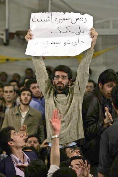 يوسف رشيدى، دانشجوى پلىتکنيک که با اين پلاکارد به حضور احمدىنژاد در پلىتکنيک اعتراض کرده بود، محکوم به اعدام شده است.