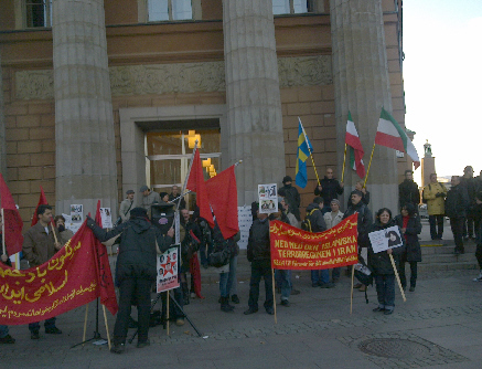 حضور معترضان از ساعت هشت صبح مداوما ادامه داشت. گروههای مختلف در نخستین ساعات روز در محل حاضر شده بودند. قرار بود یا آرزو این بود که در صورت امکان از حضور مزدوران رژیم اسلامی در مجلس سوئد جلوگیری شود. متاسفانه دسترسی به آنها میسر نشد . با این همه اما تظاهرات مداوم از طرف گروههای متفاوت تا ساعتهاادامه داشت.