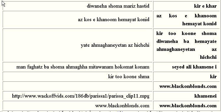 ضديت اراذل و اوباش با ما، مايه افتخار است!بد نيست شما هم بدانيد مخالفان شبکه زنان و اين ليست بلند بالا چه قماش آدمهايى هستند. اگر حالتان بهم نميخورد بخوانيد: ![]() تمام اين امضاها در فاصله ساعت 17:03 تا 17:11 روز يازدهم فوريه به ليست ما اضافه شده است. همگى از کامپيوتر شماره 62.178.222.208 ارسال شده اند که از ويندوز XP و براوزر Firefox/0.10.1 استفاده ميکند. اين فحشها را از کامپيوترى در شهر وين پايتخت اتريش برايمان ارسال کردهاند که نام آن را در زير ميبينيد.